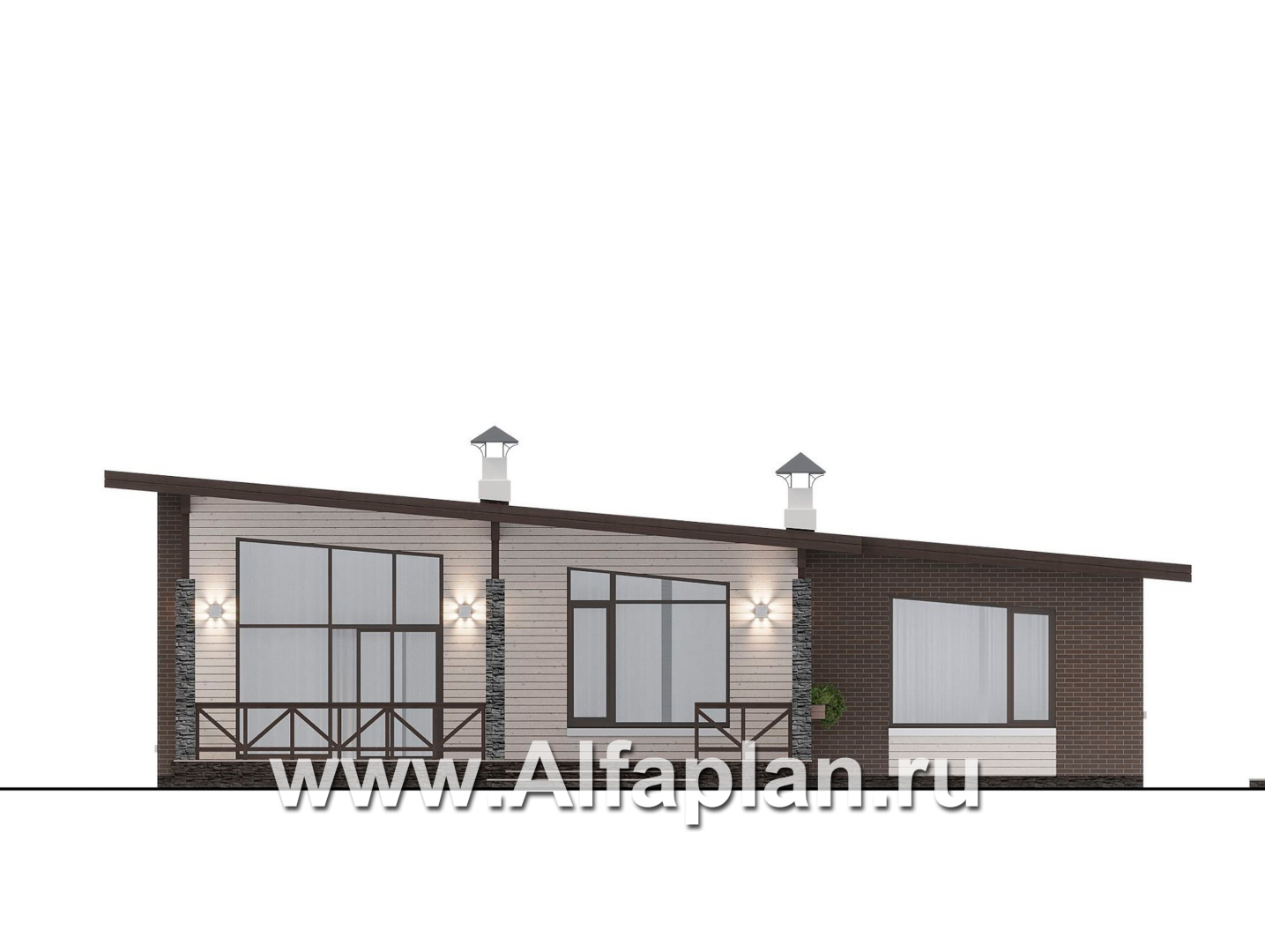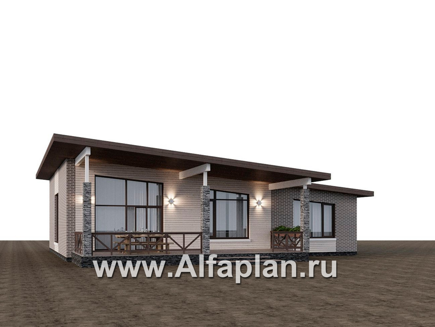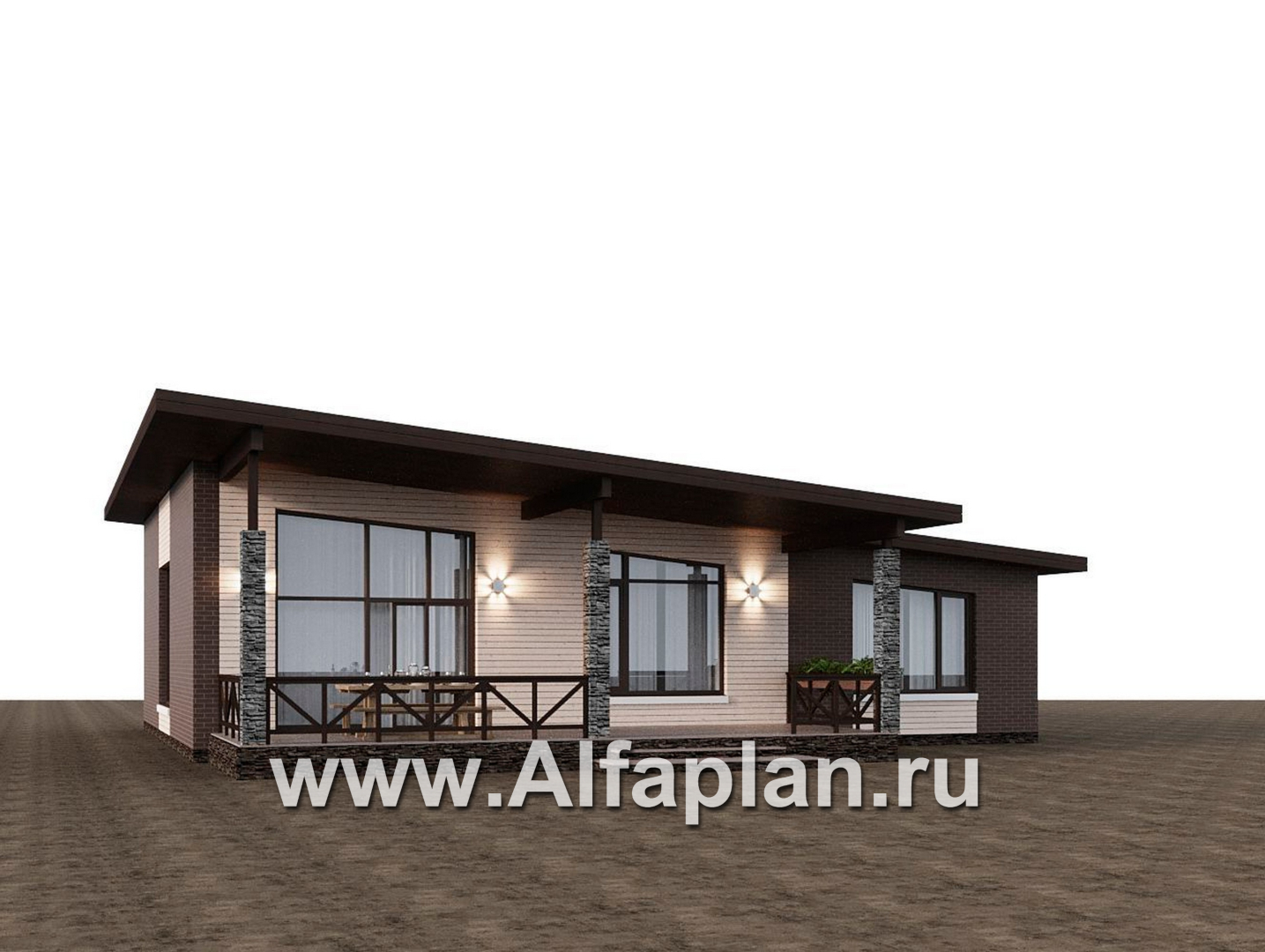 «Стрелец» -проект современного одноэтажного дома с террасой со стороны входа, с односкатной крышей