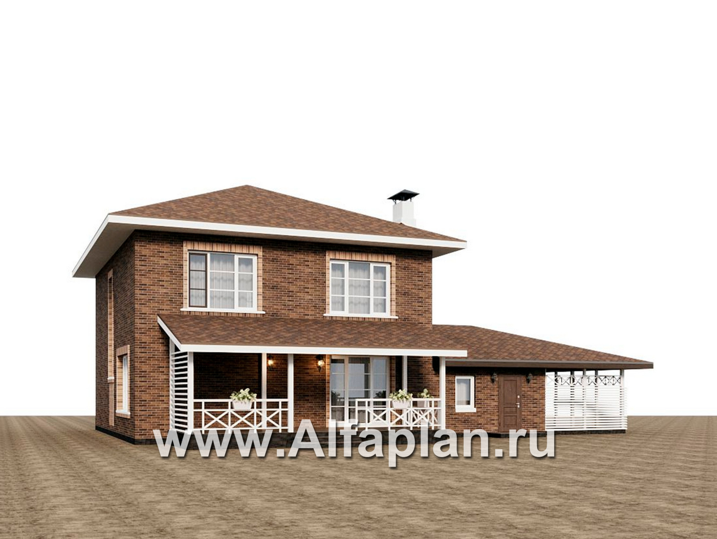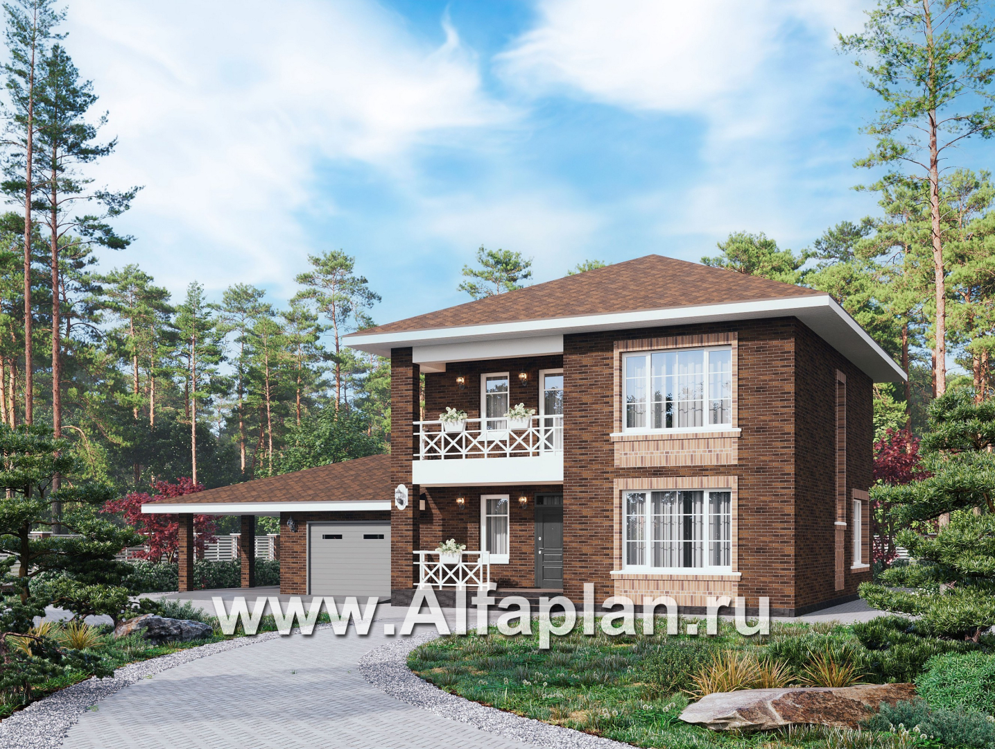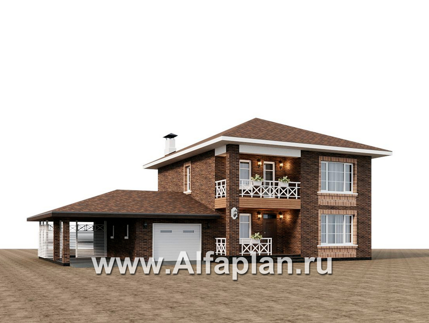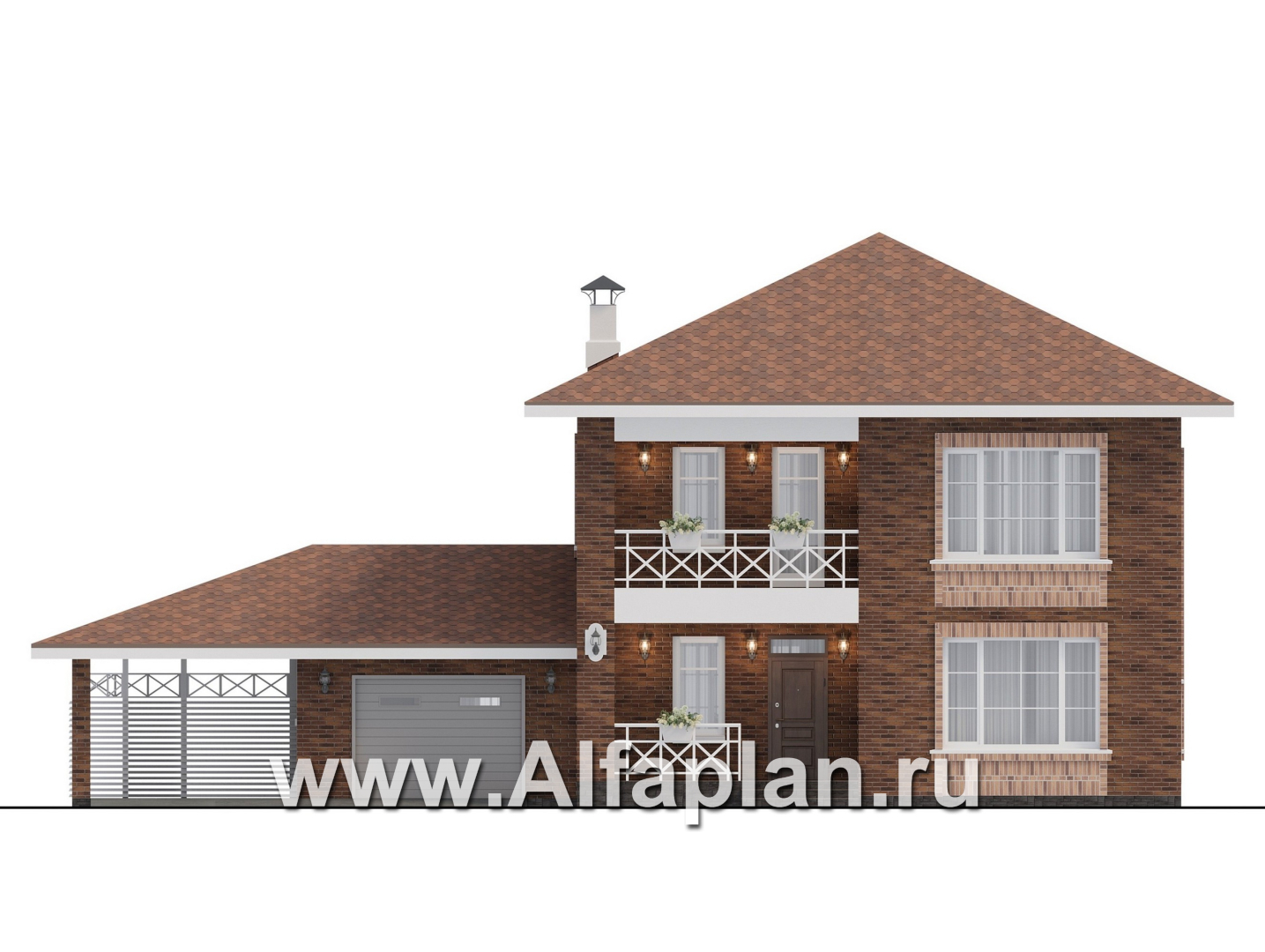 «Сайма» - проект двухэтажного дома из кирпичей, с террасой, в баварском стиле, с гаражом