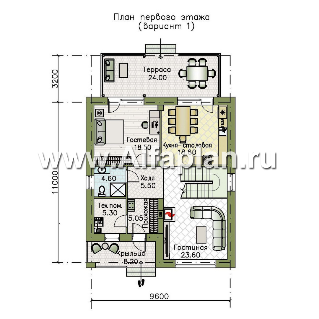 «Ладога» - проект двухэтажного дома из газобетона, в современном стиле, с террасой, отличная планировка