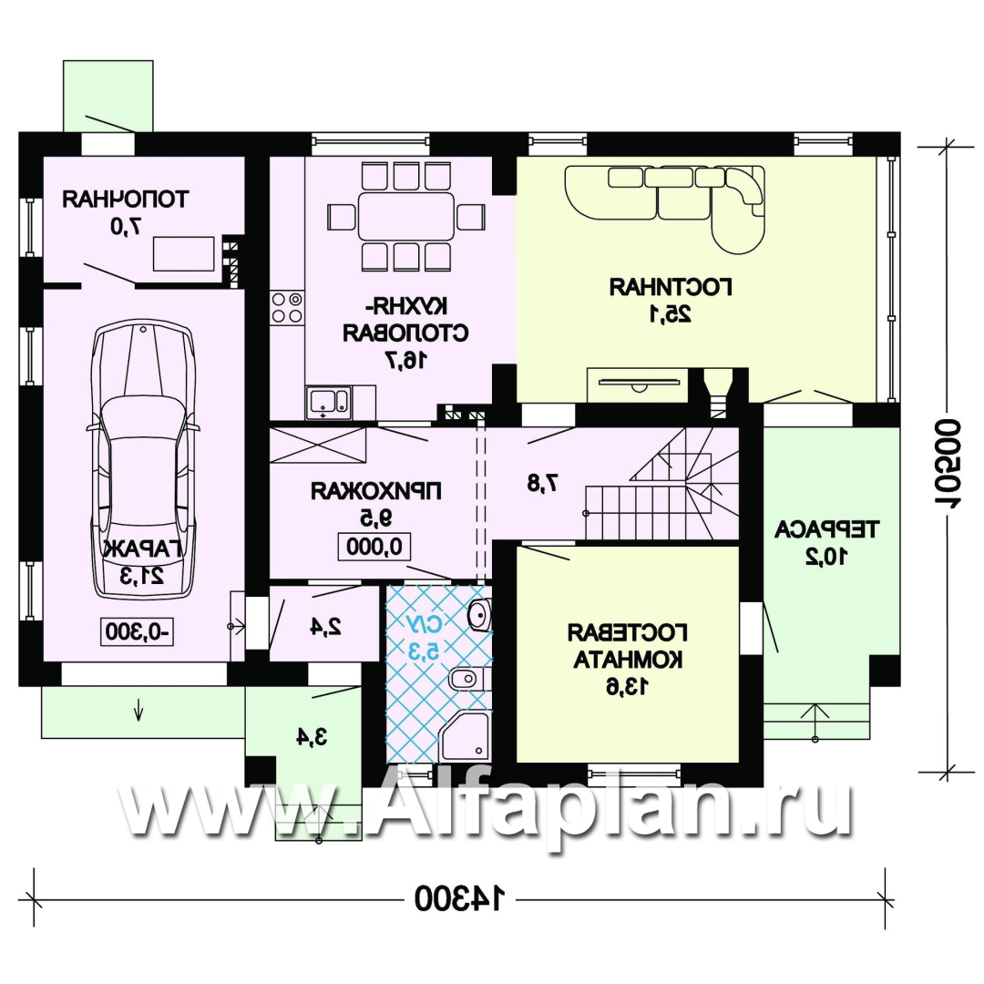 Проект дома с мансардой, планировка с кабинетом и с гаражом на 1 авто, в современном стиле