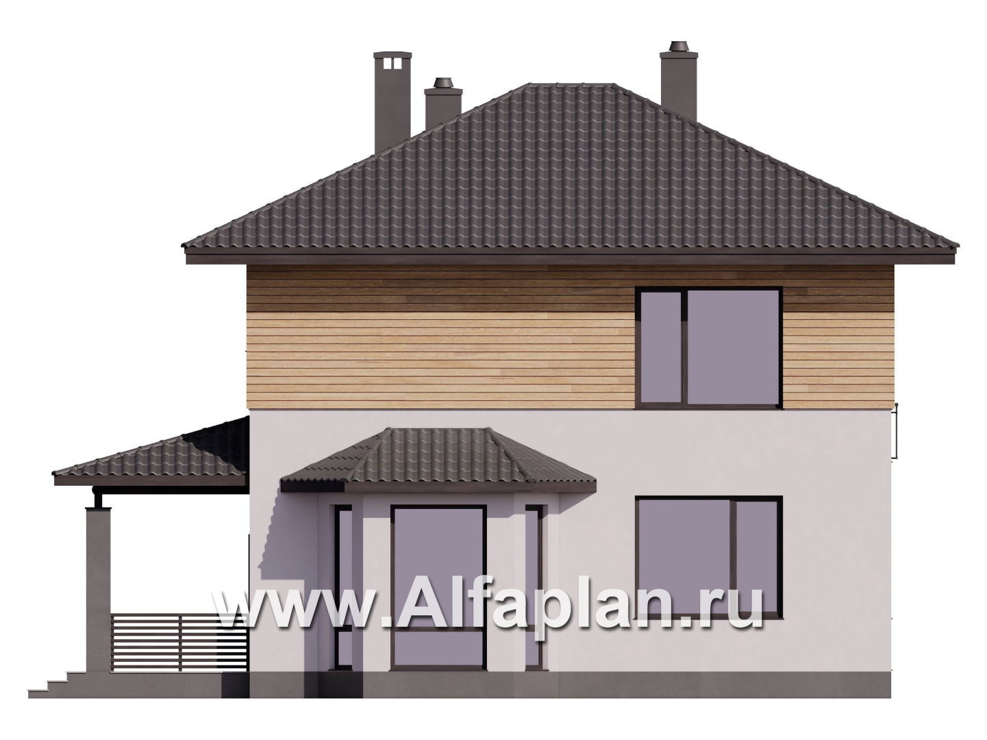 G117b-S Проект двухэтажного дома, с террасой и с эркером, планировка с кабинетом на 1 эт