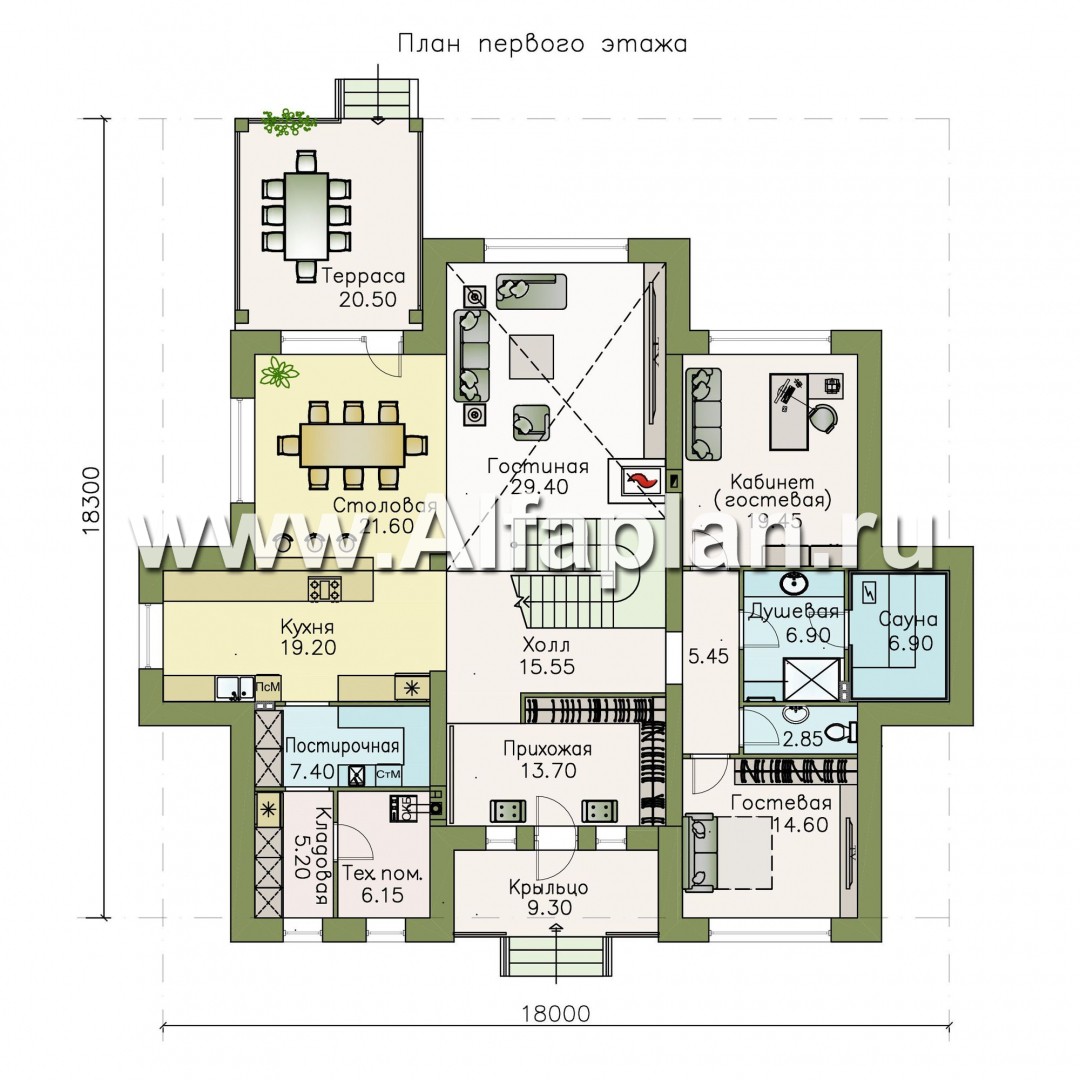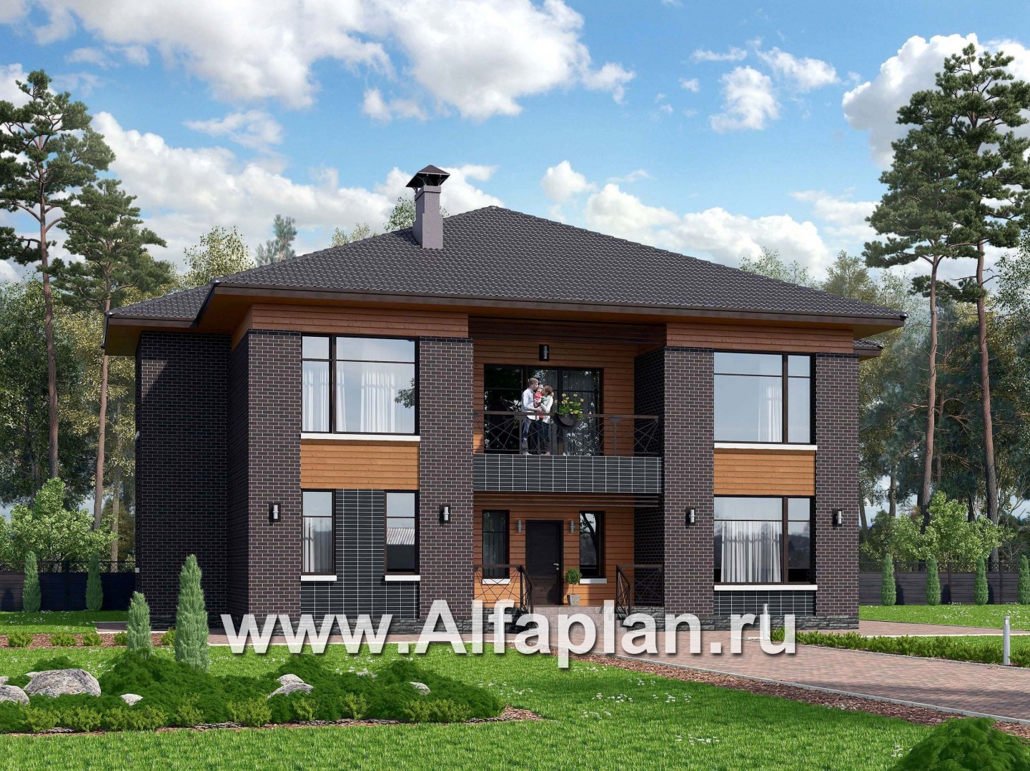 712A-S «Дунай» — проект двухэтажного дома, вилла с двусветной гостиной, баварская кладка