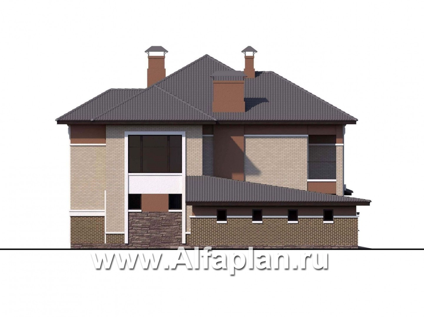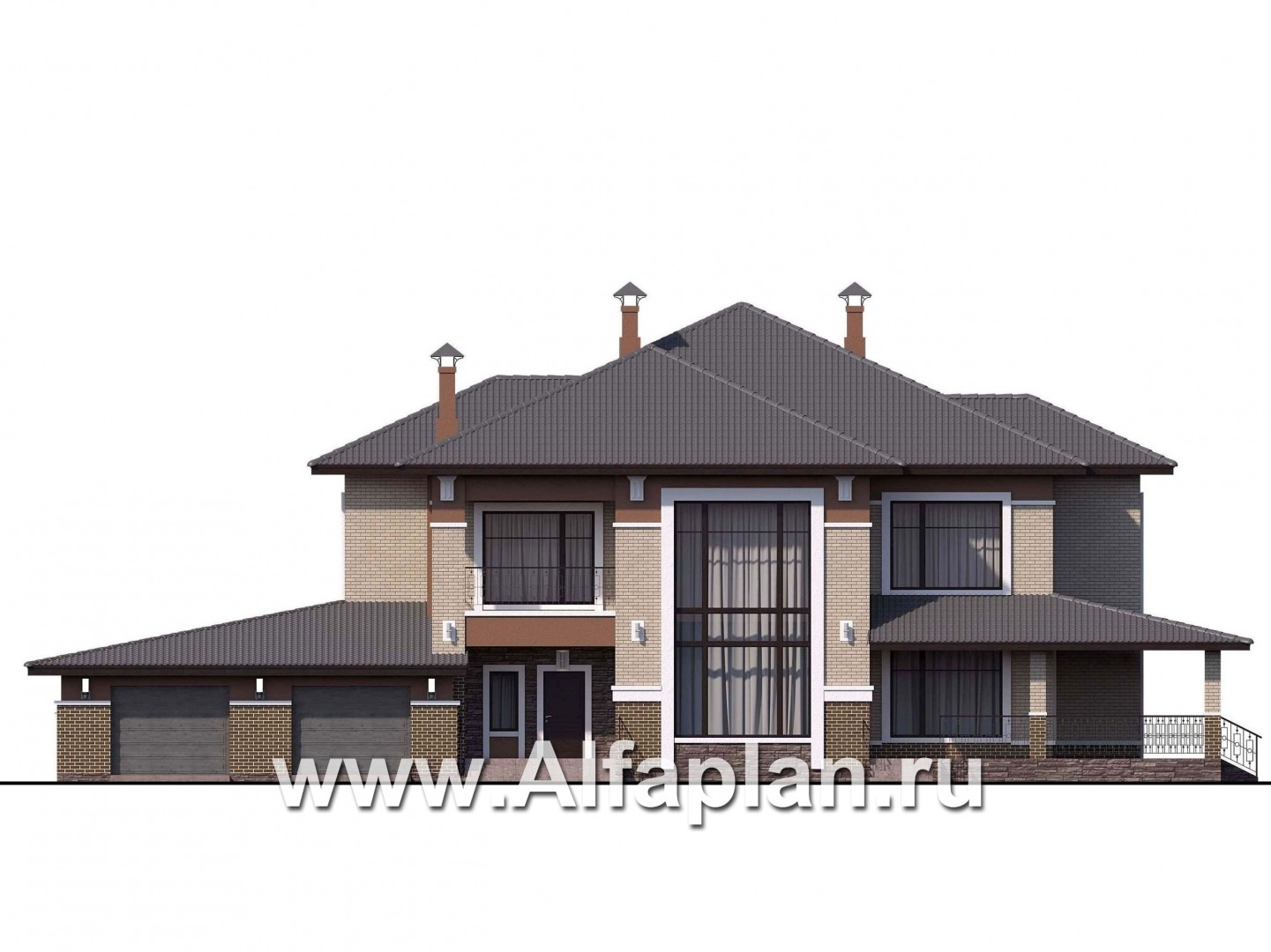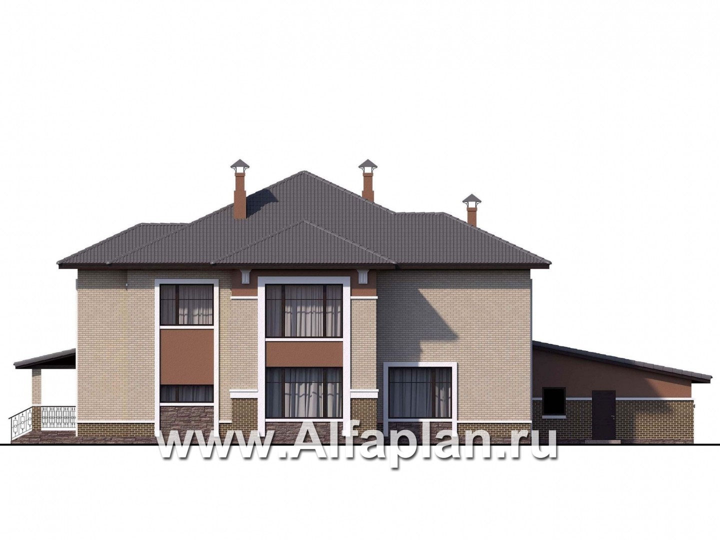 • оригинальную крытую террасу, описанную вокруг угла здания, противоположного гаражу.