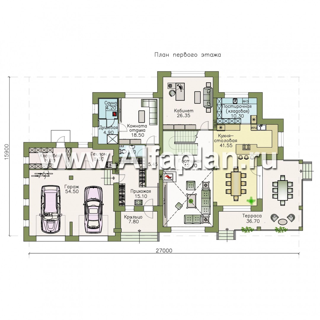 Первый этаж включает в себя следующие помещения: