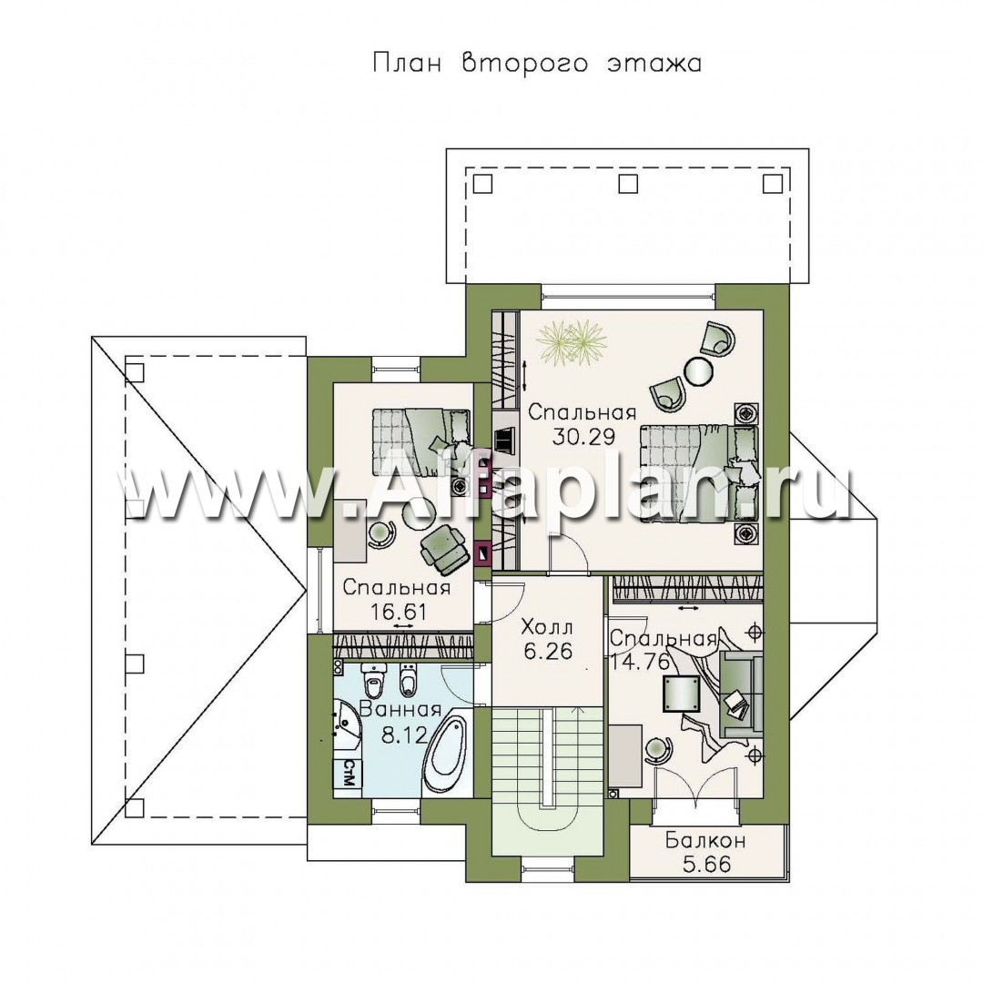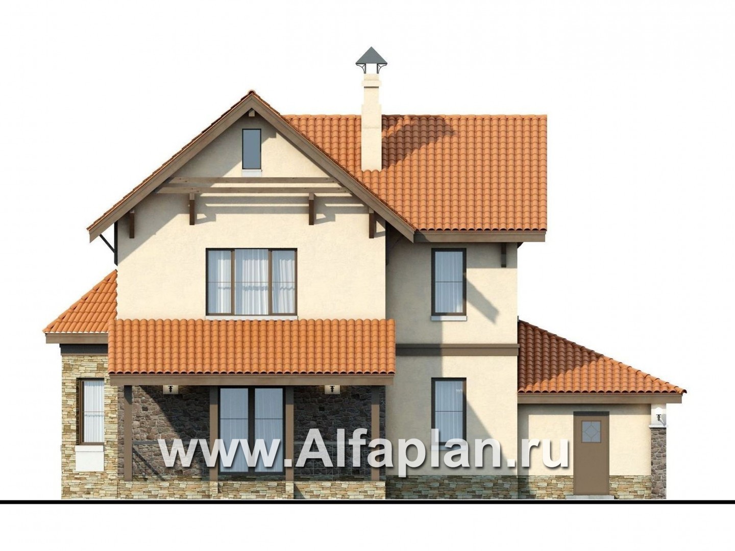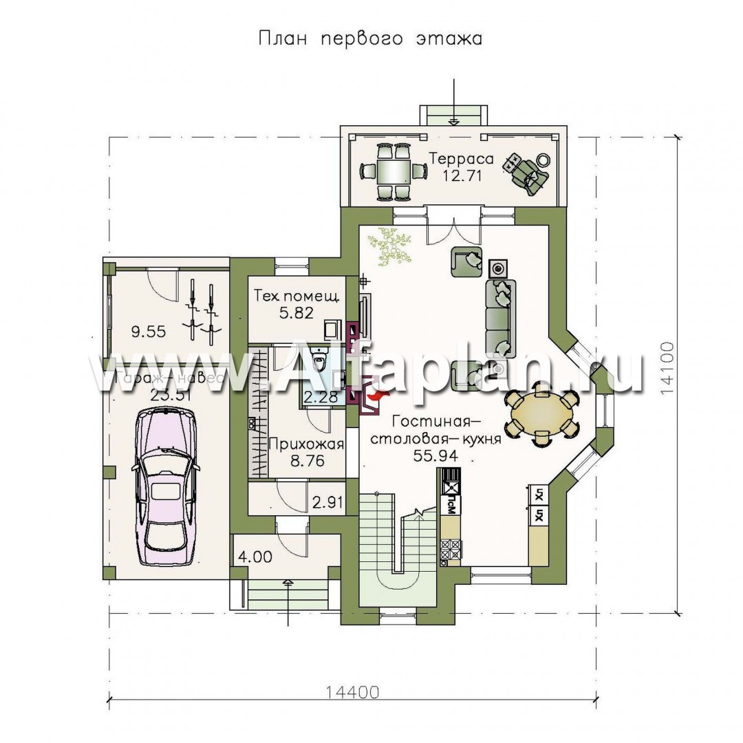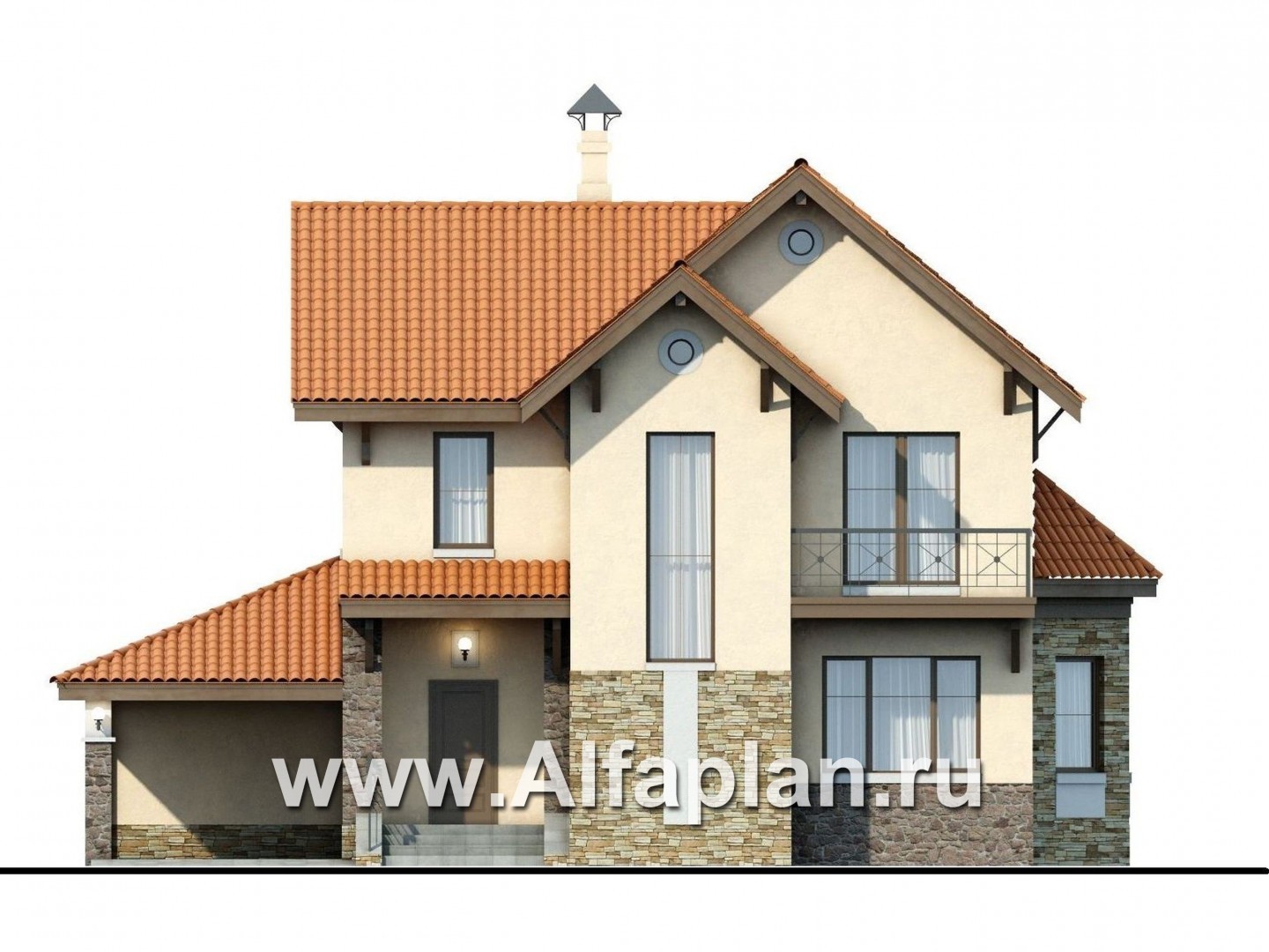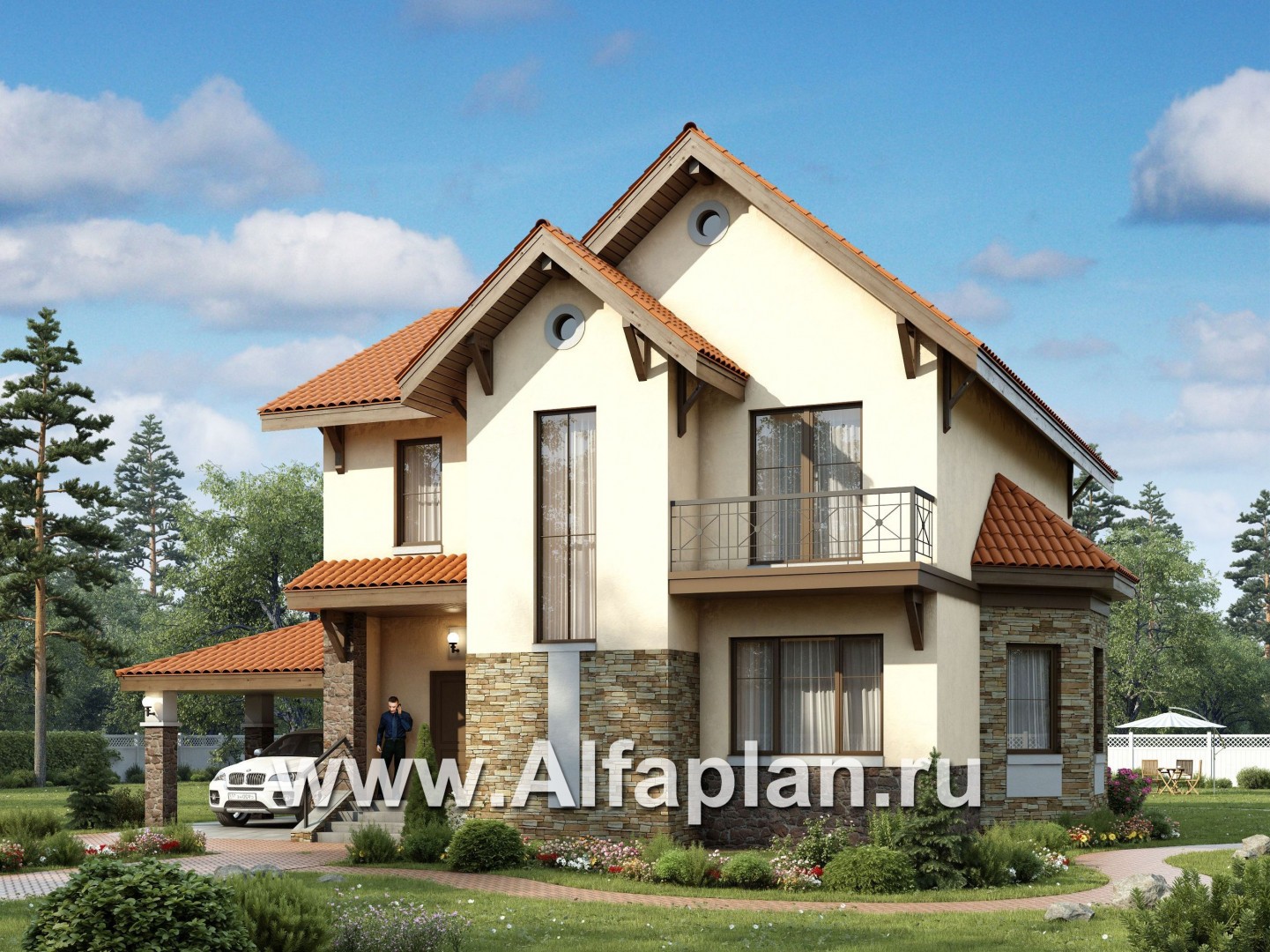 141A-S «Pro vita» - проект двухэтажного дома с эркером, с балконом и с террасой, навес на 1 авто