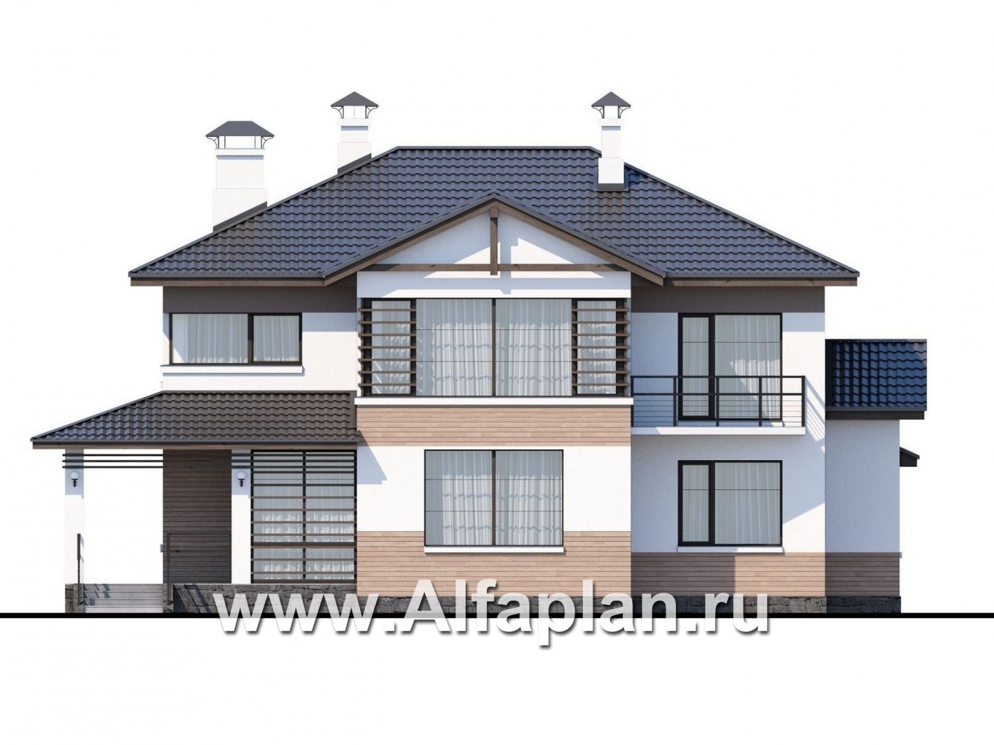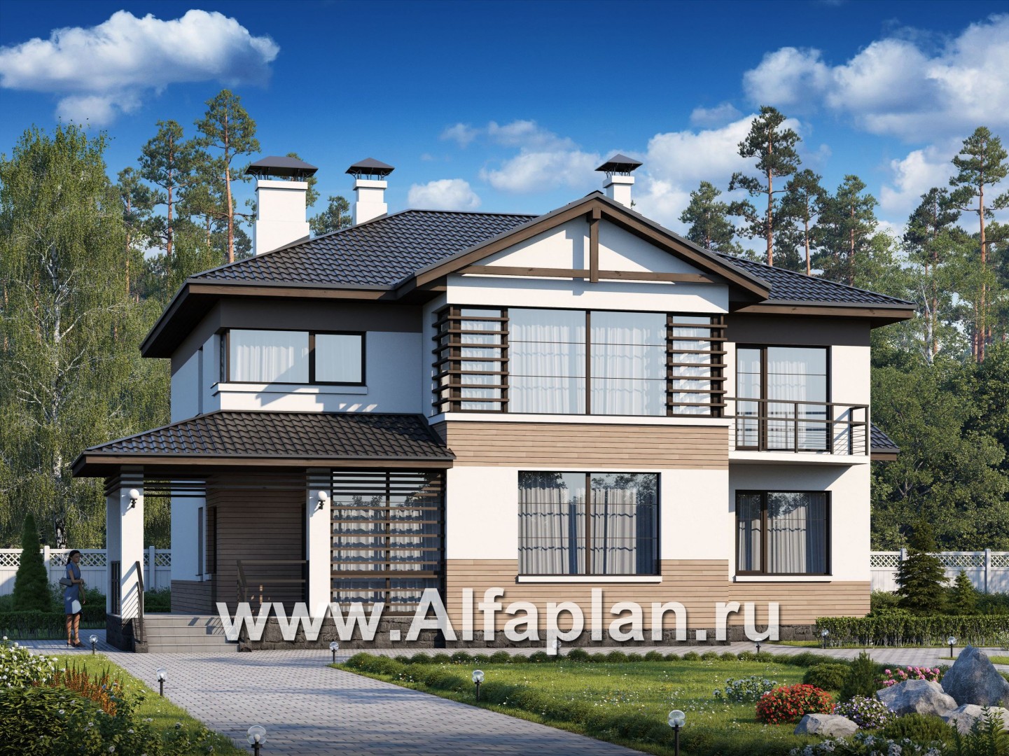 «Аутентик» - проект двухэтажного дома, с террасой и балконом, планировка с лестницей в центре, в современном стиле