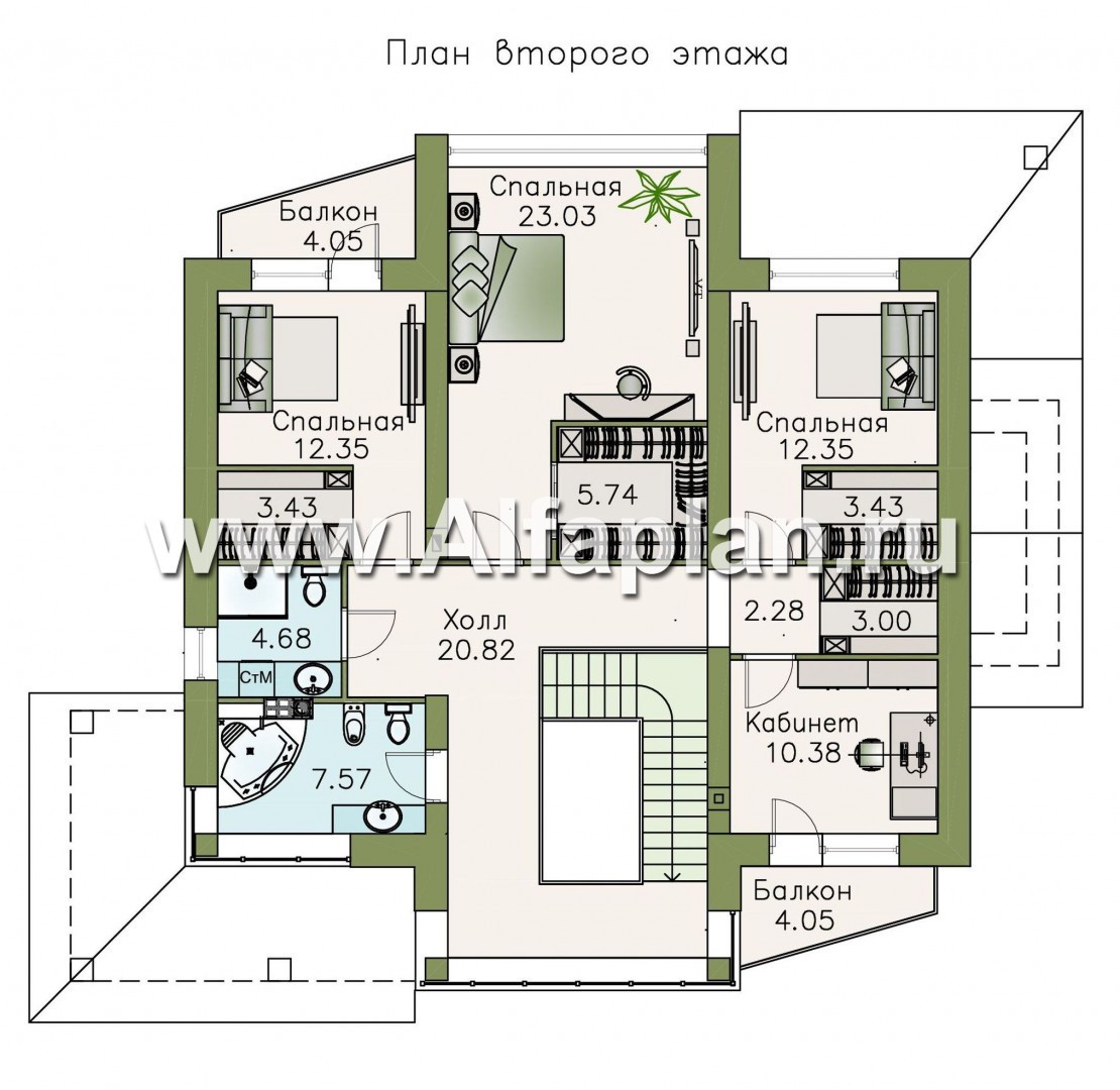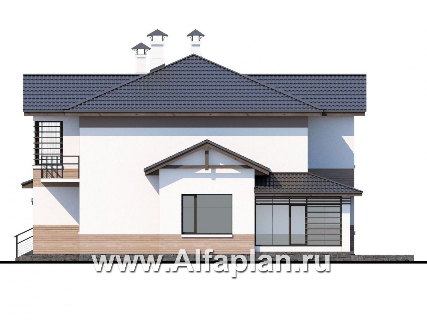 518A-S «Аутентик» - проект двухэтажного дома, с террасой и балконом, планировка с лестницей в центре, в современном стиле