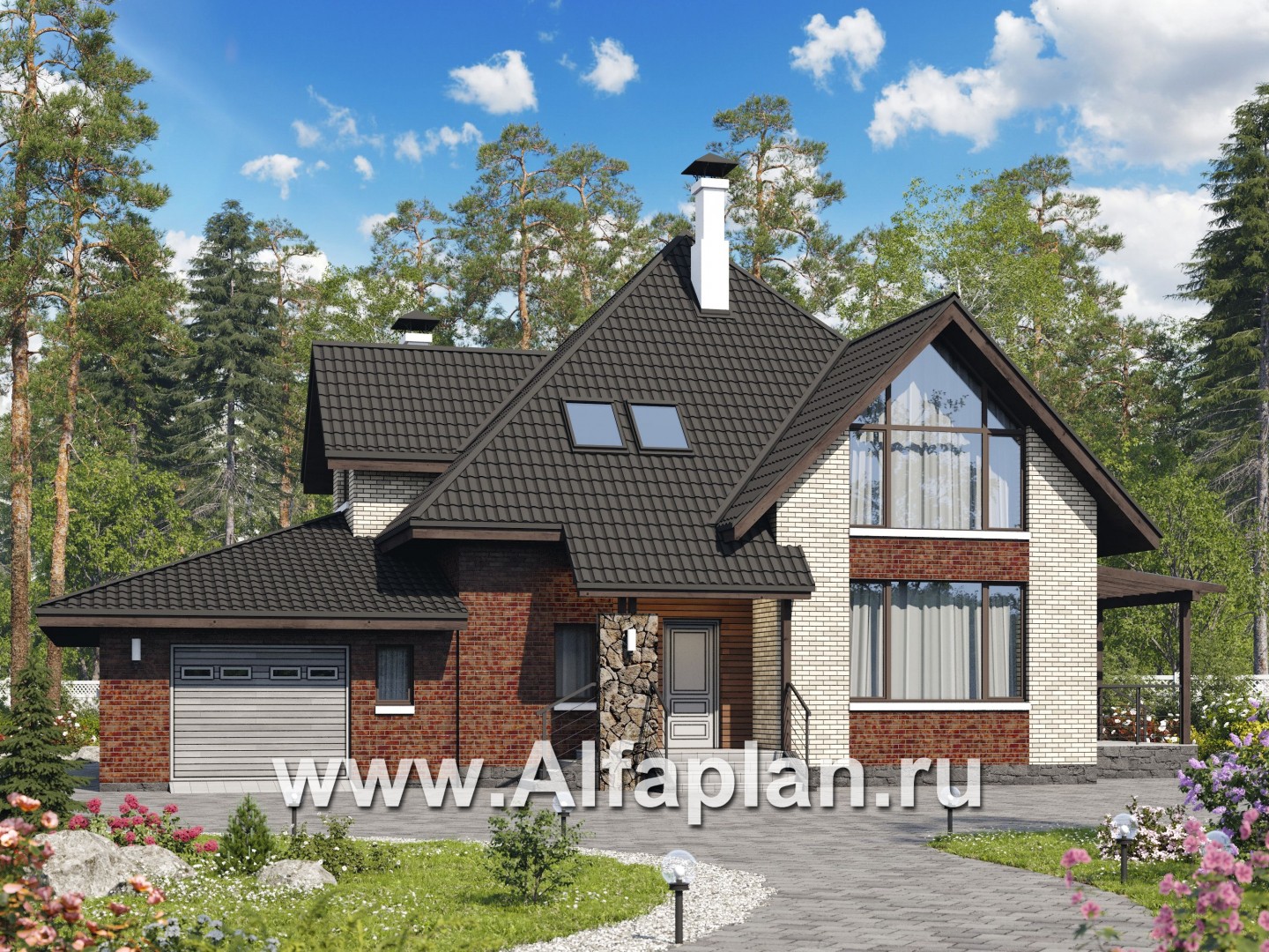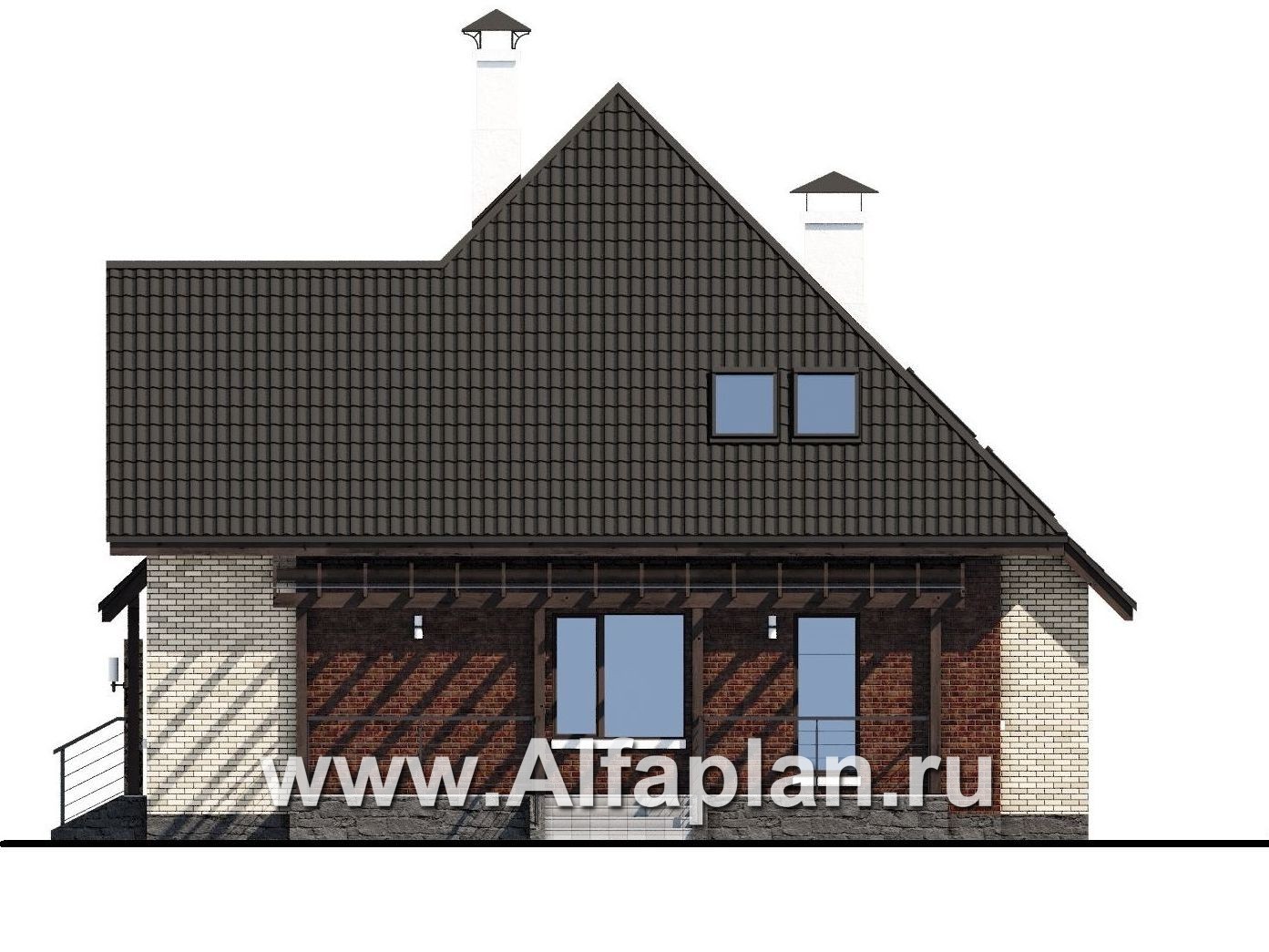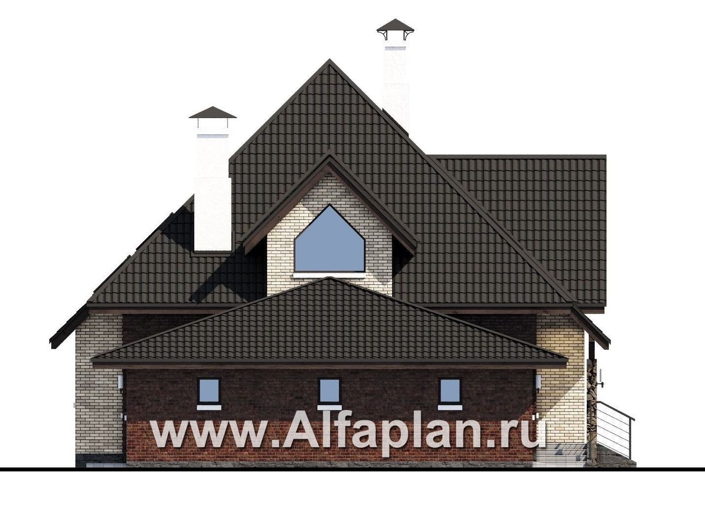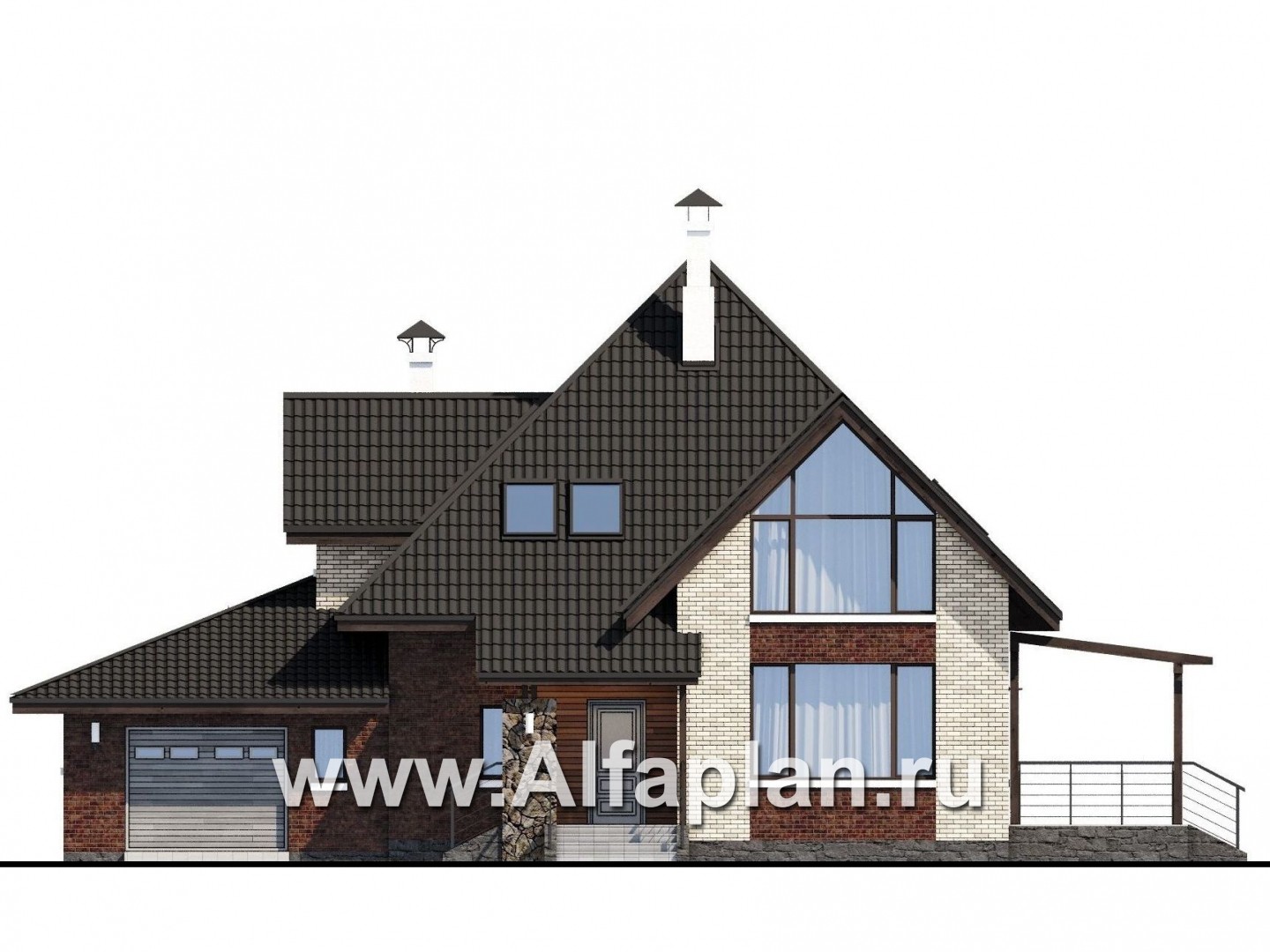 «Персей» - проект дома с мансардой, из кирпича, с террасой и с гаражом, современный стиль