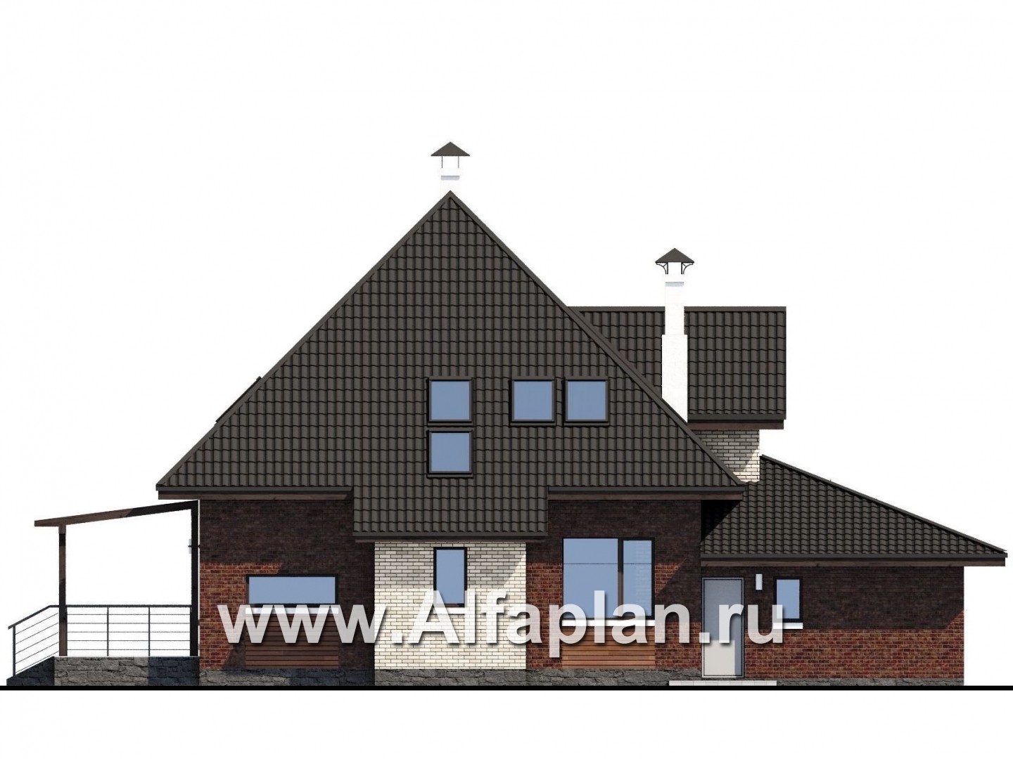 594B-S «Персей» - проект дома с мансардой, из кирпича, с террасой и с гаражом, современный стиль