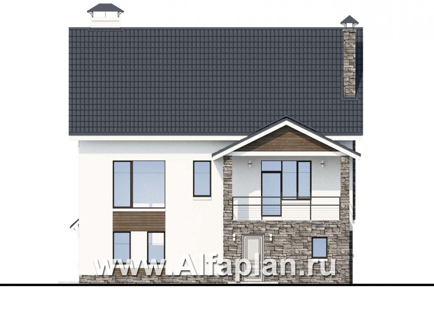 340A-S «Альпина» - проект двухэтажного дома, с мансардой и с гаражом на 2 авто в цоколе