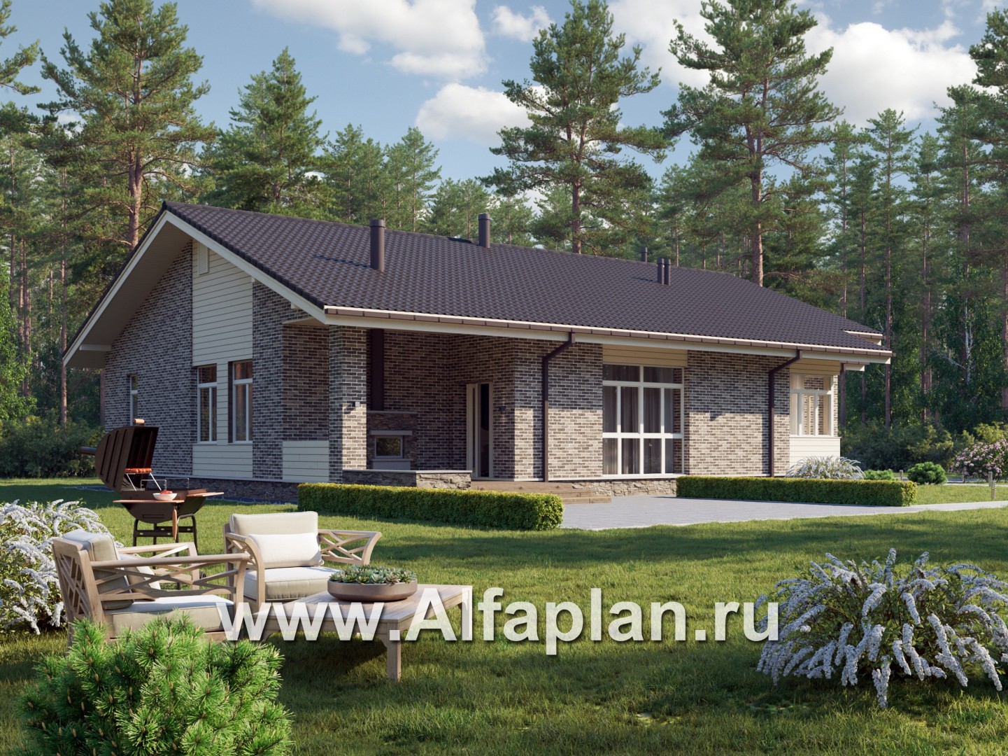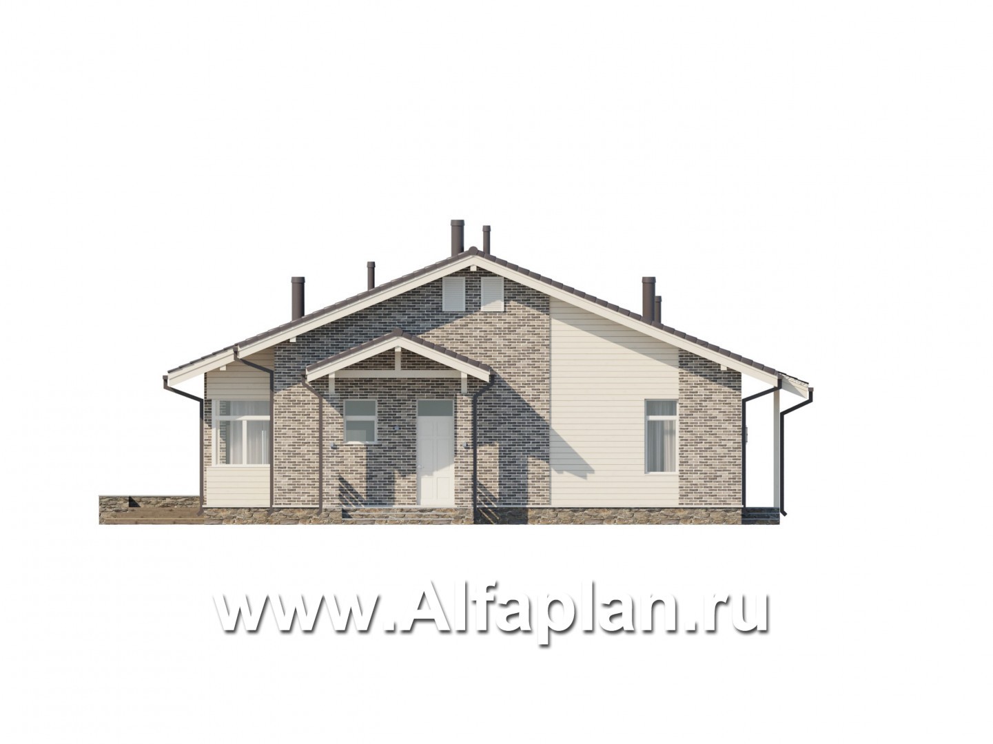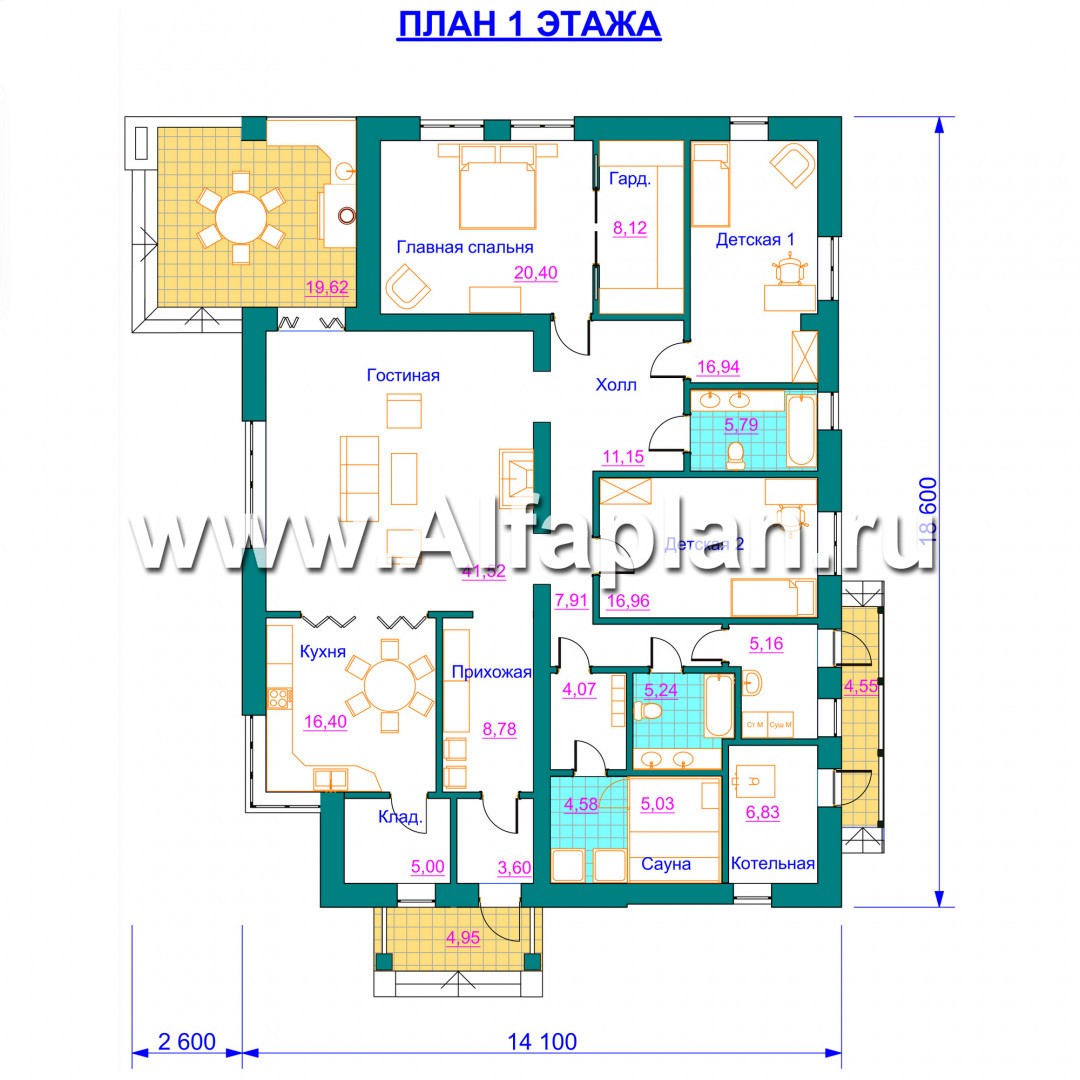 Проект одноэтажного дома из газобетона, с террасой и сауной