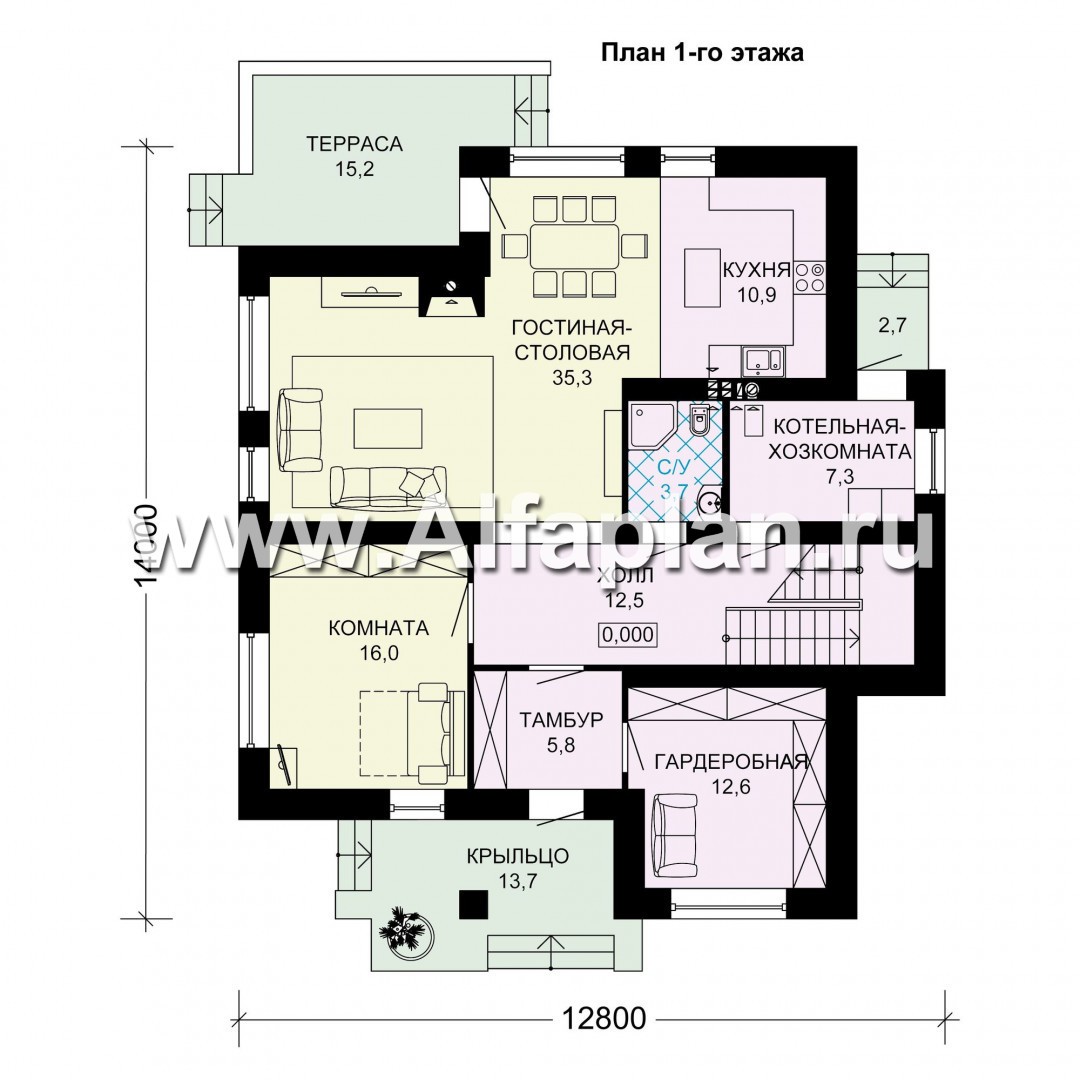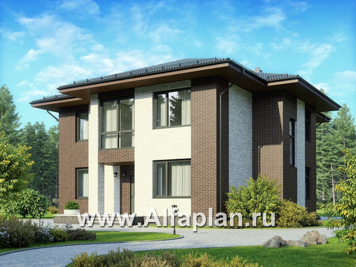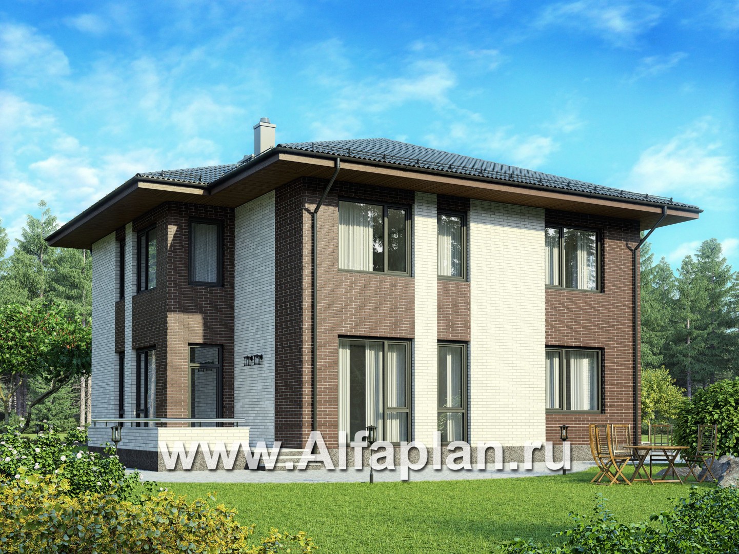 Проект двухэтажного дома, планировка с кабинетом, с террасой, в современном стиле - технические характеристики