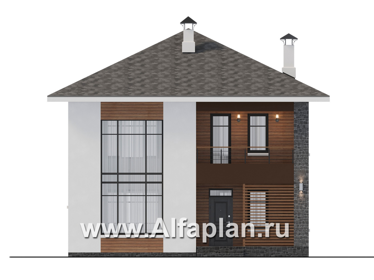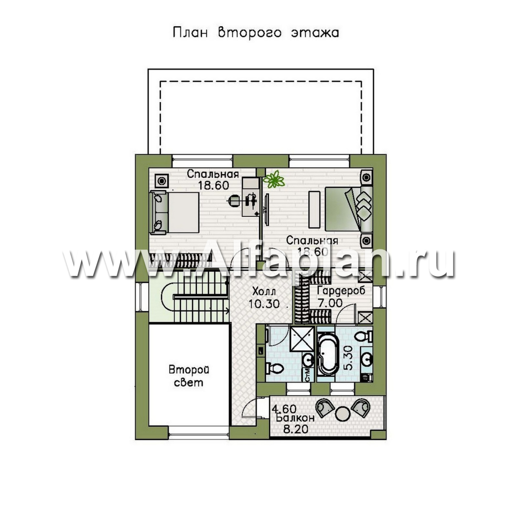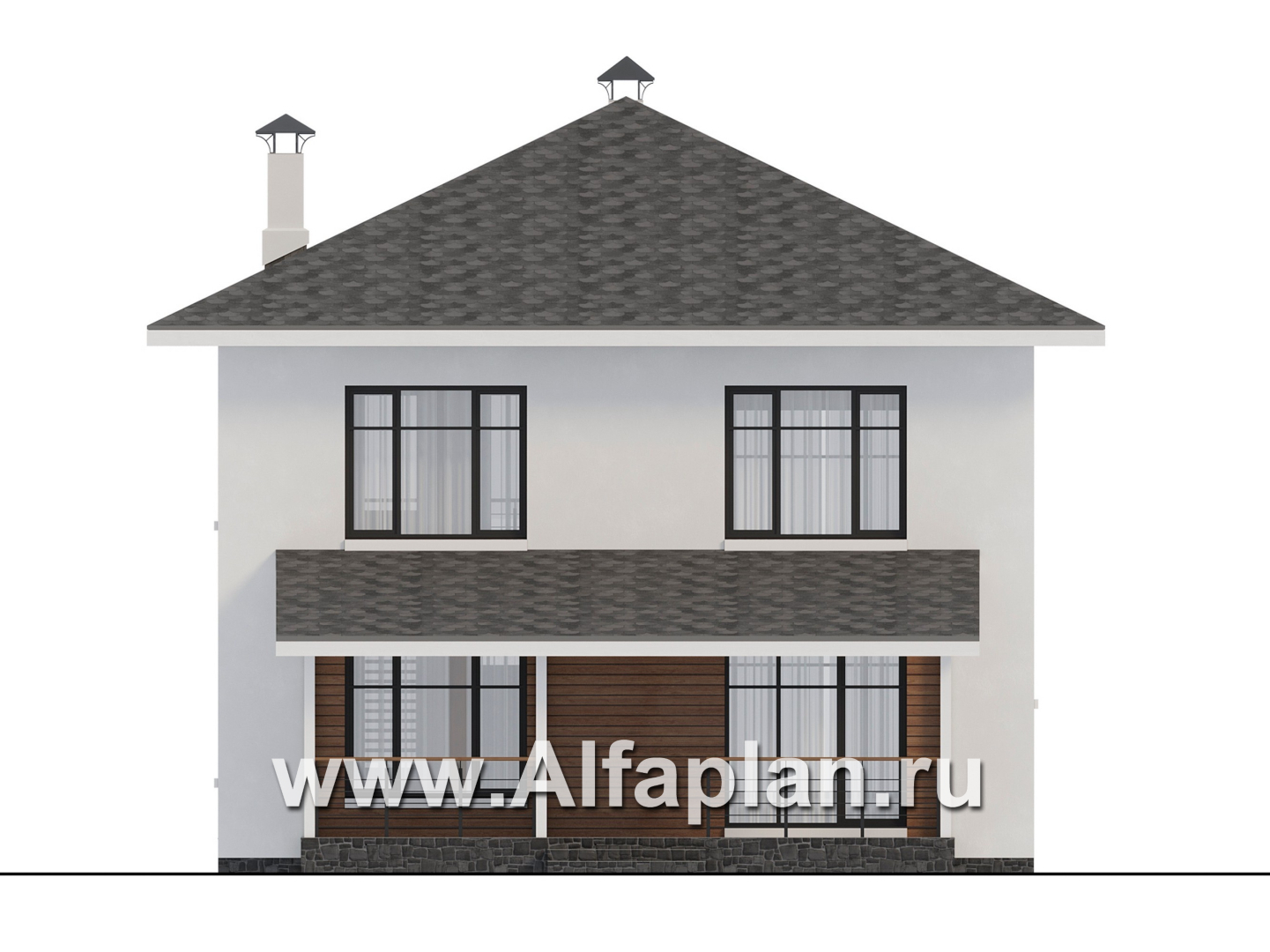 943C «Ладога» - проект двухэтажного дома из газобетона, в современном стиле, со вторым светом и с террасой