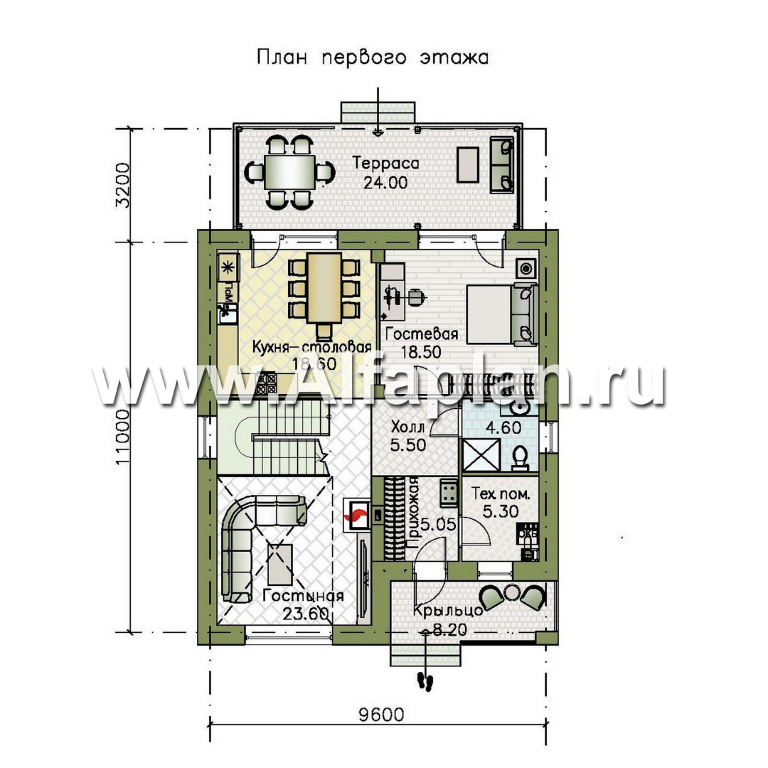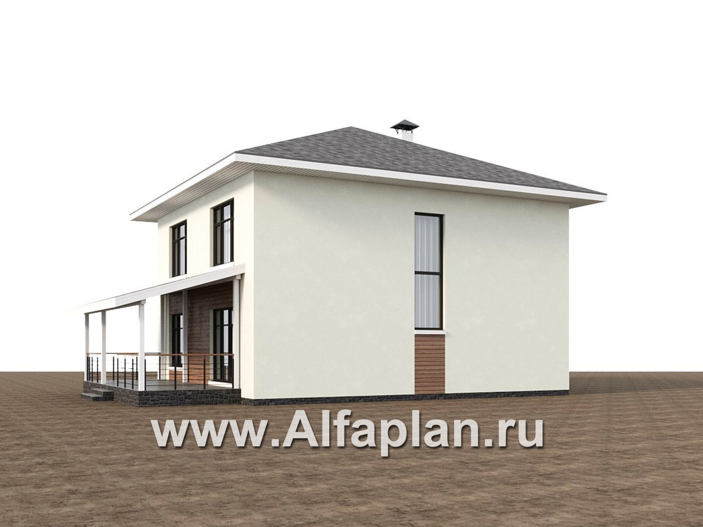 «Ладога» - проект двухэтажного дома из газобетона, в современном стиле, со вторым светом и с террасой